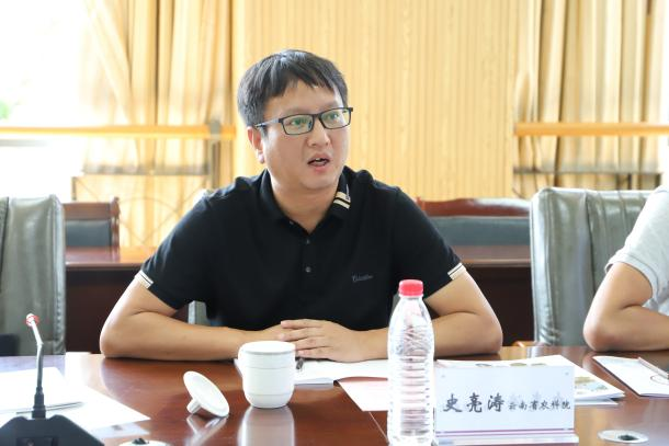 方海东从战略优势、气候优势、产业优势、交通优势、资源优势、人才优势6个方面介绍了云南省农业科学院热区生态农业研究所。史亮涛、何光熊分别从研究所的发展历史、研究重心、未来规划、人才引进政策、国家水土保持科技示范园实习基地情况进行了介绍。地理学部副主任陈光杰、副书记吕峥分别从自然地理与资源环境专业发展建设特色与规划,学生就业等方面作相应介绍。参加座谈交流的还有地理科学学院副院长兼地理科学学院教工党支部书记丁文荣、自然地理学与资源环境专业负责人董铭、学部教务办主任孟超以及教师代表苏怀、季顺川等。