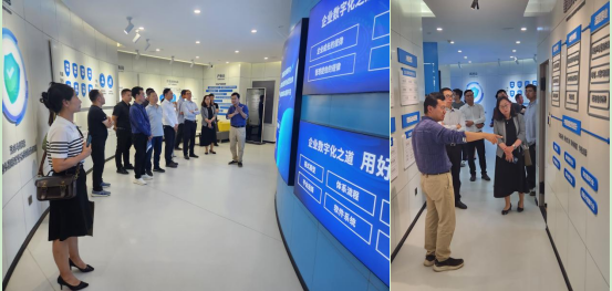 会前,郝淑美一行参观了公司展馆,2010级法社学院逻辑学专业校友、猎贝狐(昆明)科技集团有限公司董事长吕世亮详细介绍了公司的发展历程、文化理念、规模现状、人才招聘与培养,以及在网络营销、管理软件、财税法服务、平台产业园运营等全方位的数字化服务情况。