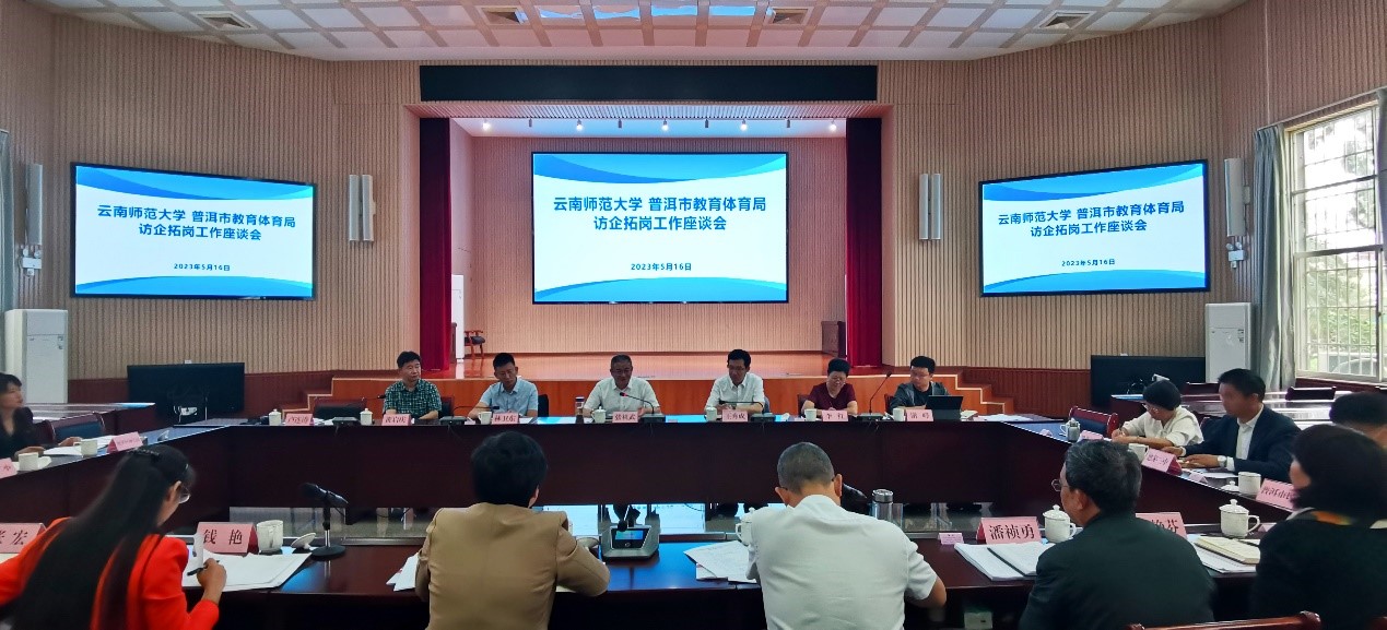 16日上午,云南师范大学赴普洱市教育体育局访企拓岗工作座谈会在普洱市教体局召开。普洱市副市长别燕妮、普洱市教育体育局、思茅区教育体育局相关负责人及思茅主城区7所学校校(园)长参加座谈。