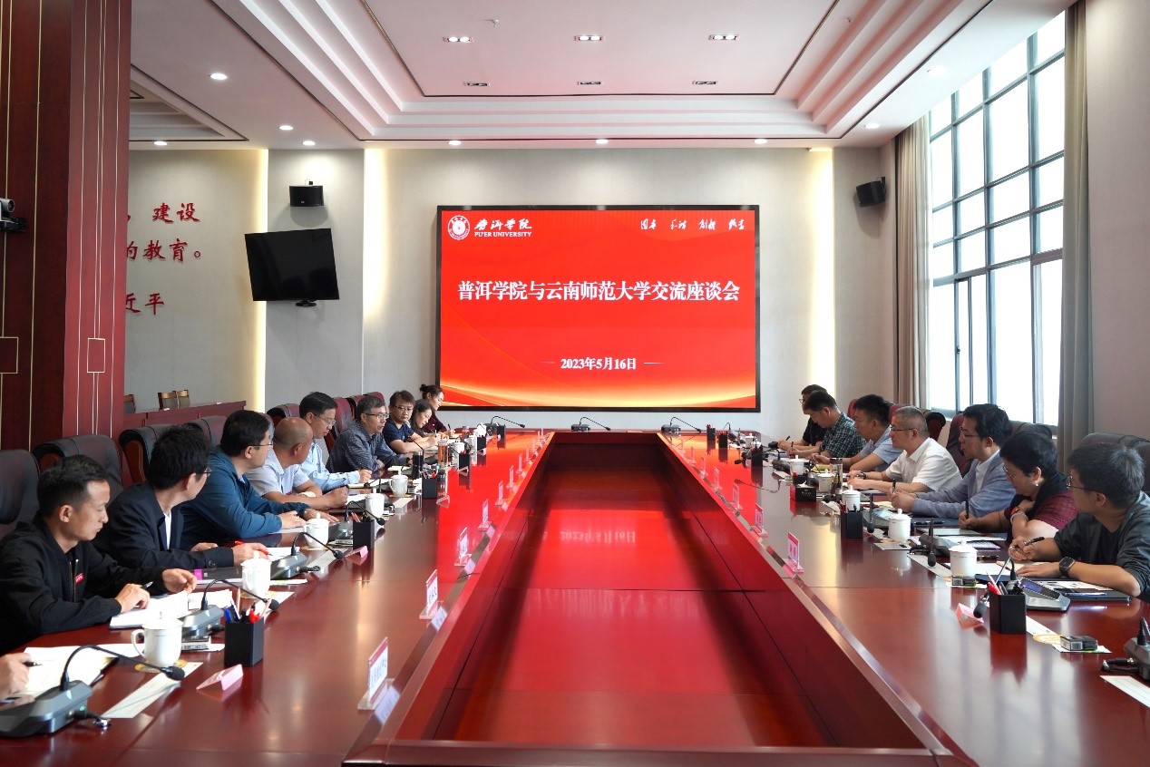 马文会介绍了普洱学院的基本情况和建设发展目标。胡国云对云南师范大学长期以来给予普洱学院的关心支持表示感谢。他指出,普洱学院办学特色、区位优势明显,希望未来两校更加紧密合作,在专业建设、人才培养、师资队伍建设、教育对外开放等方面资源共享、优势互补,携手推进教育教学高质量发展。张祖武对普洱学院近年来在学科建设、专业建设方面取得的成绩表示祝贺,指出两校都是云南省高等学校教师教育联盟的成员,教师教育、政策研究、课题申报等方面具有广泛的合作空间,希望双方加强对接、整合资源,发挥各自优势和特色,共同打造高质量教师教育体系,共同服务云南教育高质量发展。