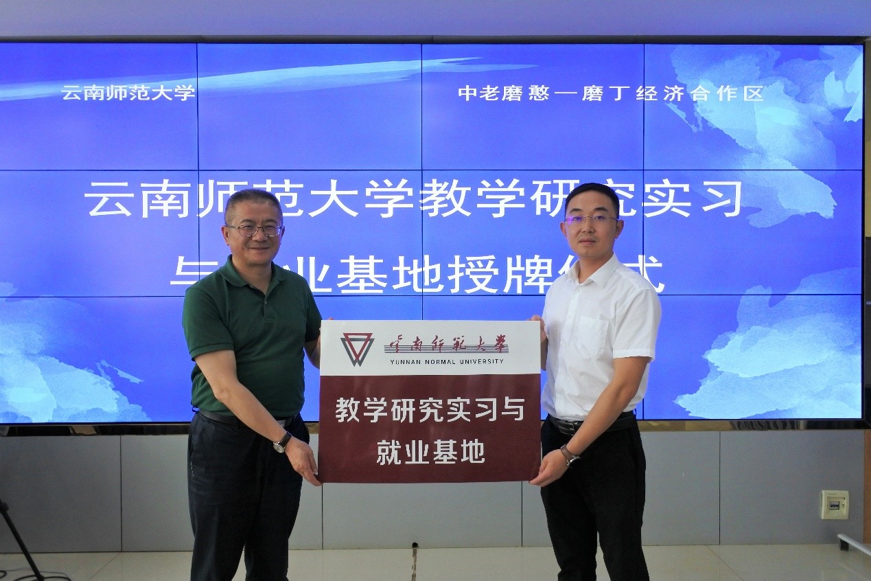调研组一行还到中老磨憨—磨丁经济合作区访企拓岗,与合作区管委会就共建“教学研究实习与就业基地”事宜进行座谈。合作区党工委委员周隆剑、管委会副主任李志东、社会事务管理局、对外开放和跨境合作促进局等参加座谈。双方在师资培养、干部培训、实习就业、政策研究、产教融合方面达成合作意向,将进一步深化校区合作,主动融合和服务国家对外开放工作大局, 服务云南省“3815”战略实施。会后,张祖武为“云南师范大学教学研究实习与就业基地”授牌。