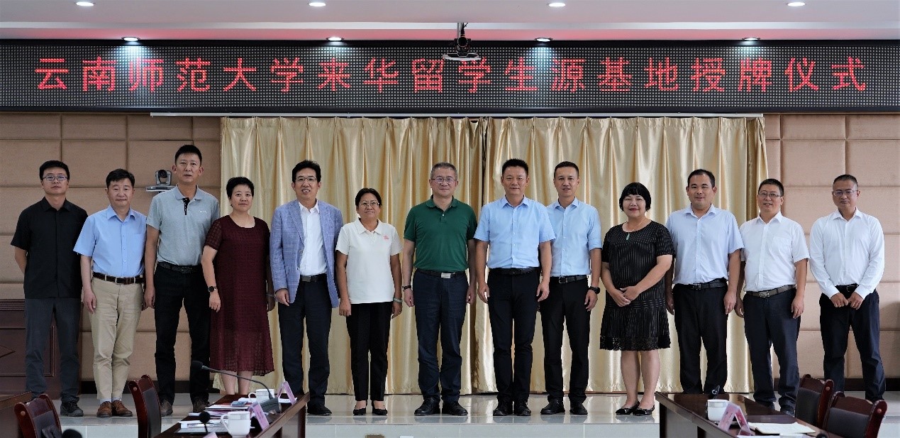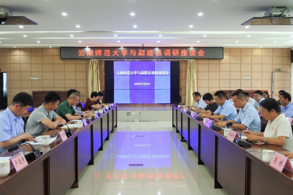 15日下午,调研组一行赴勐腊县了解《云南师范大学与勐腊县人民政府全面合作协议》推进情况,并为“云南师范大学来华留学生源基地”授牌。勐腊县委副书记、县长黄磊,县委副书记刘林、县人大常委会主任吴卫华、县政协主席郭丽红等县领导及相关部门负责人参加座谈。