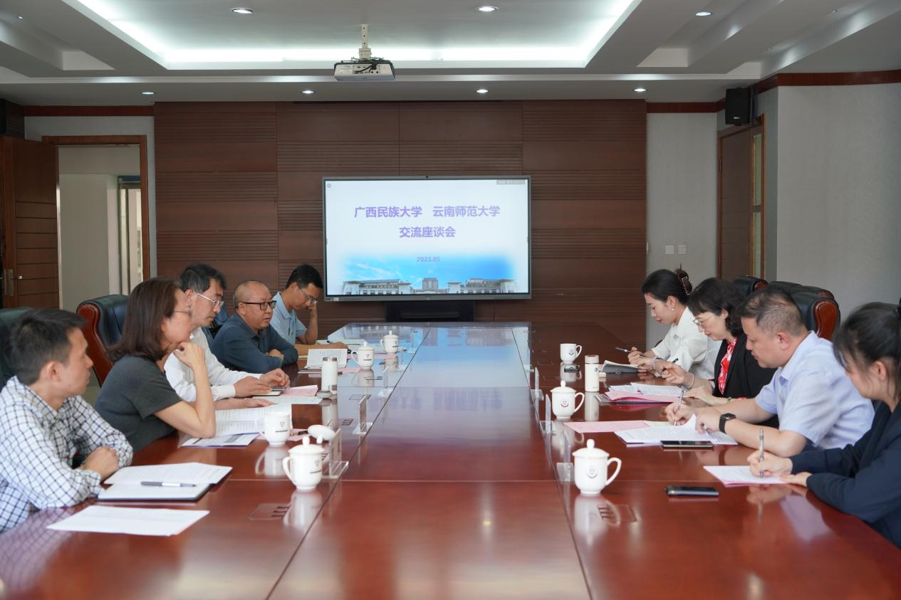 张玮代表学校对黄晓娟一行的到访表示欢迎,并介绍了学校的历史沿革、发展历程以及研究生教育等基本情况。黄晓娟对云南师范大学长期以来同广西民族大学保持友好联系表示感谢,并介绍了广西民族大学的基本情况,希望两校今后在学科建设、研究生招生管理、研究生培养等方面开展持续深入的交流合作。