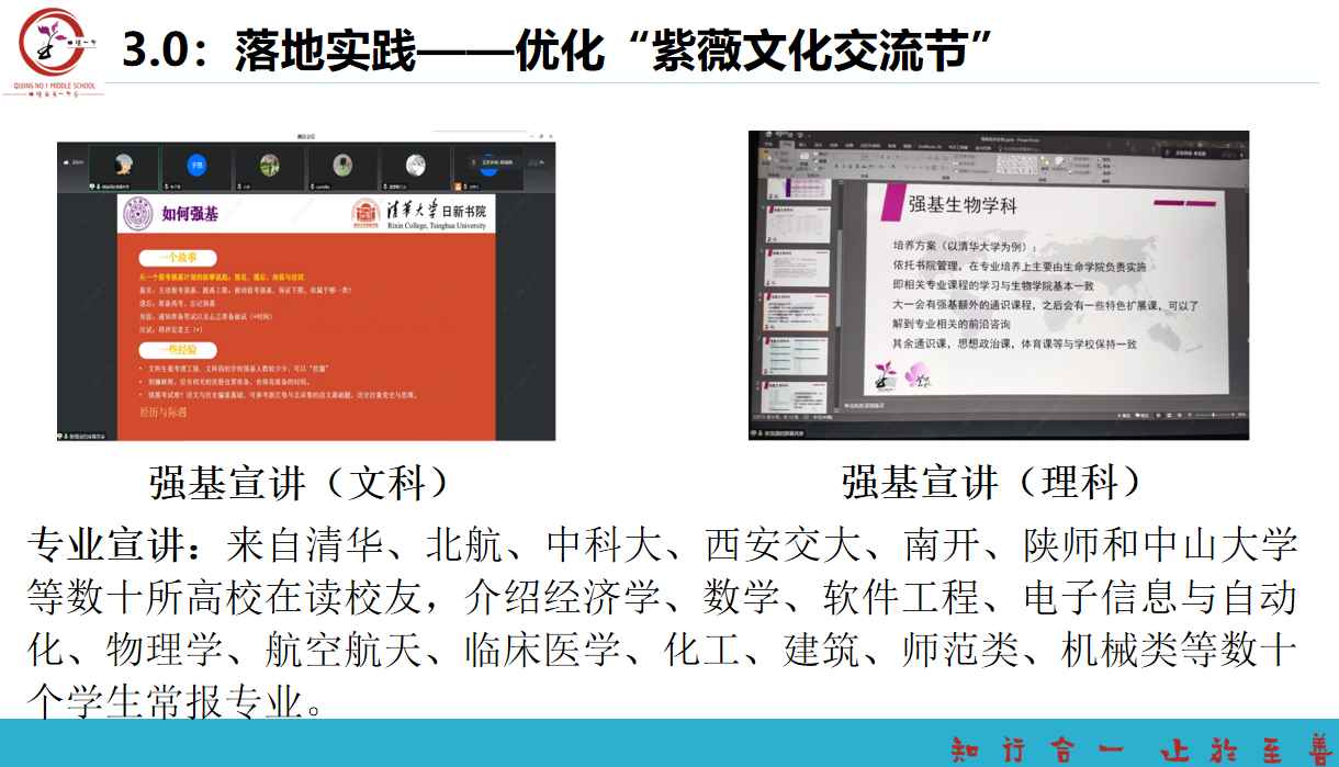 安宁中学学生发展中心主任李绍顼老师作《“1+X”生涯规划实践与思考》主题分享,从“学校教育”“走进高校”“社会实践”“家庭教育”四个板块分享了安宁中学生涯规划教育实践。“1”是以学校为核心,“X”为围绕学生成长成才,聚合高校平台、社会资源、家庭教育等方面的力量,共同牵引和助推学生发展。