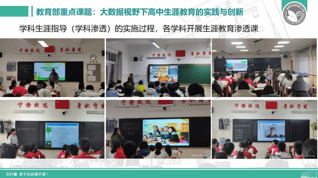 昆明市官渡区第二中学副校长李一峰介绍了官二中从2013年开始至今的生涯教育探索经验。在校本课程开发、生涯实践活动开展的基础上,着力生涯教育课题研究,教学教研结合纵深研判,探索如何将生涯教育渗透到全学科,实现全员生涯指导。