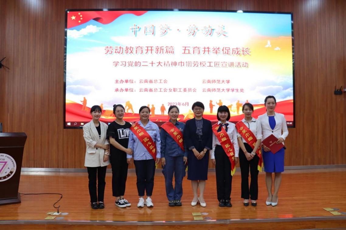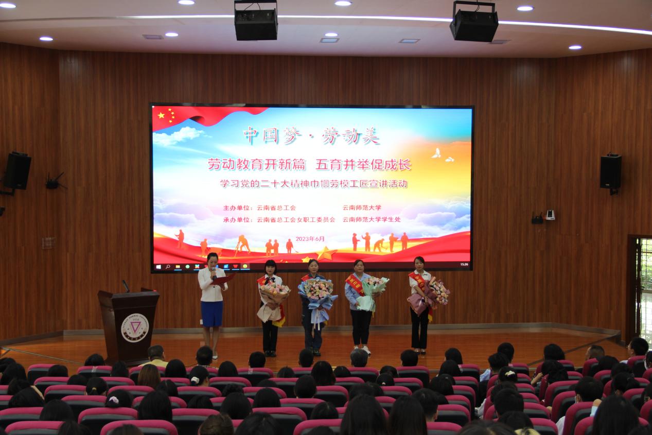 当天下午,“劳动教育开新篇 五育并举促成长”学习党的二十大精神巾帼劳模工匠宣讲会在我校汇学楼报告厅举行。云南省总工会女职工委员会副主任、女职工部部长余庆湘,云南省总工会宣传教育网络部贺靖坤,我校党委副书记李宏,相关部门主要负责人,各学院(学部)副书记、辅导员、学生代表等500余人聆听了宣讲,学校25个分会场1万余师生同步收看网络直播。