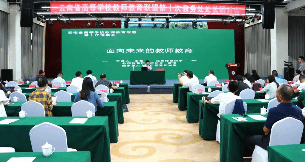 6月9日下午,云南省高等学校教师教育联盟高校教务处处长研讨会在滇西科技师范学院举行。特邀专家宋萑教授、联盟高校教务处处长、滇西科技师范学院副处级以上干部等参加会议。