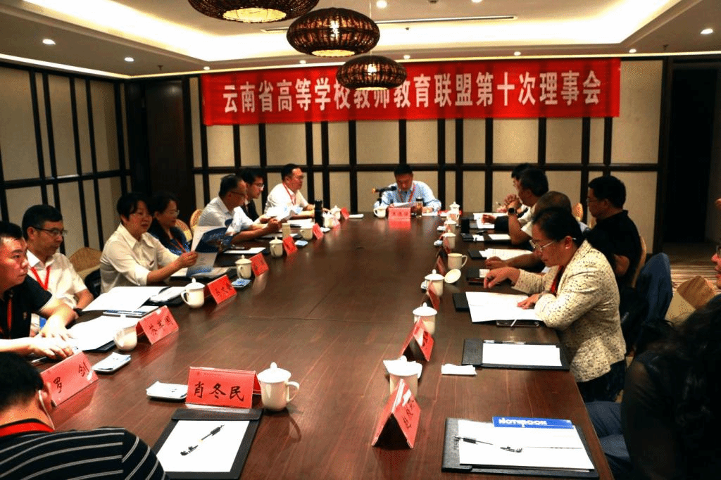 6月9日上午,云南省高等学校教师教育联盟第十次理事会在滇西科技师范学院顺利召开。联盟理事长、副理事长、理事;高等教育出版社代表;联盟秘书长、常务副秘书长、副秘书长、秘书共20余人出席会议。会议由联盟理事长、云南师范大学校长王德强主持。
