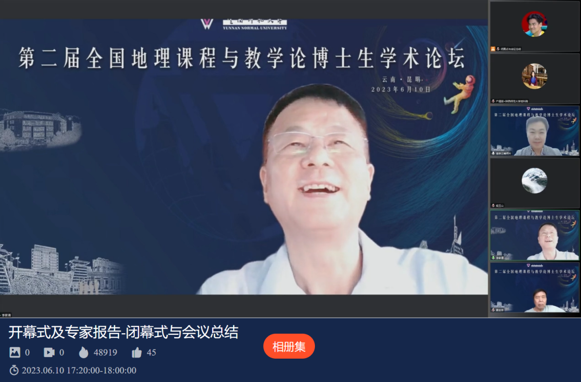 据直播数据统计,本届论坛总浏览量高达103049人次。论坛不仅是博士生潜思精研的交流学习机会,还吸引了在读本科和硕士以及广大中小学地理教师在线观摩学习。