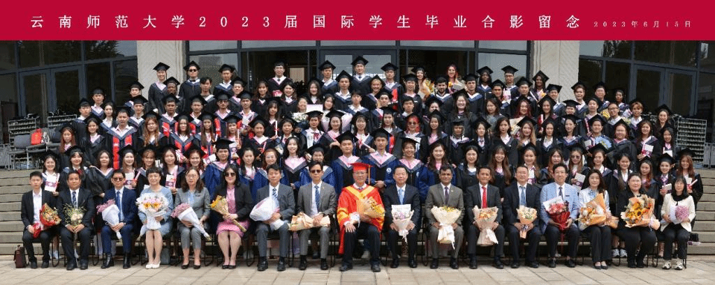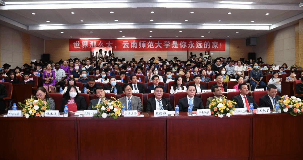 柬埔寨驻昆明总领事馆总领事华索帕拉、领事司立安,缅甸驻昆明总领事馆总领事吴多达昂、商务领事良享萌,孟加拉国驻昆明总领事馆商务领事拉希德·穆罕默德·巴兹鲁,老挝驻昆明总领事馆领事苏桑迪–高拉,马来西亚驻昆明总领事馆移民局官员赛奴丁,泰国驻昆明总领事馆教育领事林水灵;云南省侨务办公室侨务事务处处长胡恒富,云南师范大学副校长郝淑美教授出席了典礼。学校学生工作领导小组成员单位负责人、国际学生管理服务部门和教师代表、国际学生毕业生亲友代表、在读国际学生代表、往届毕业生代表和2023届国际毕业生参加典礼。