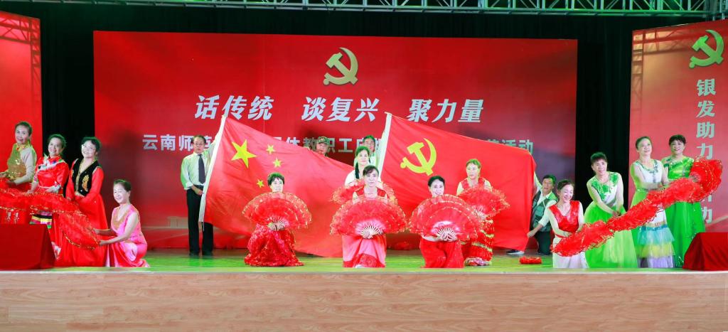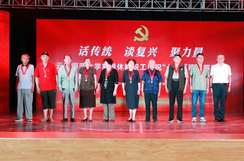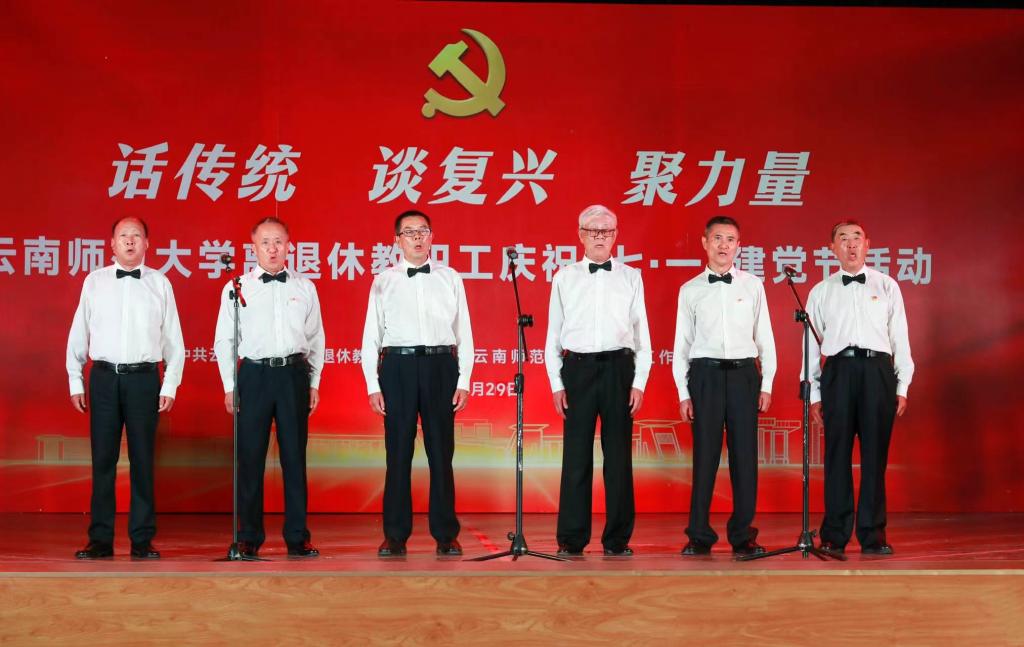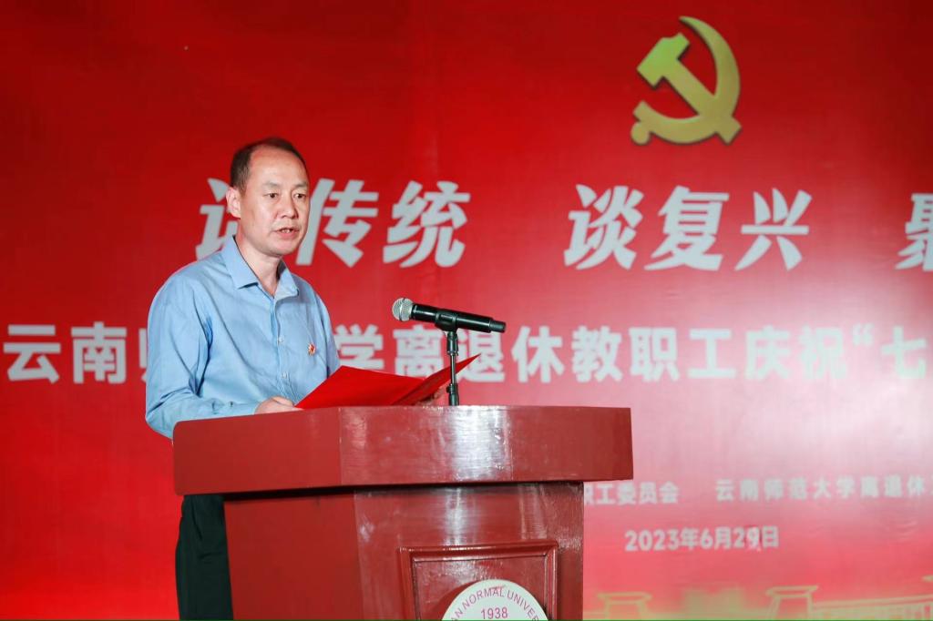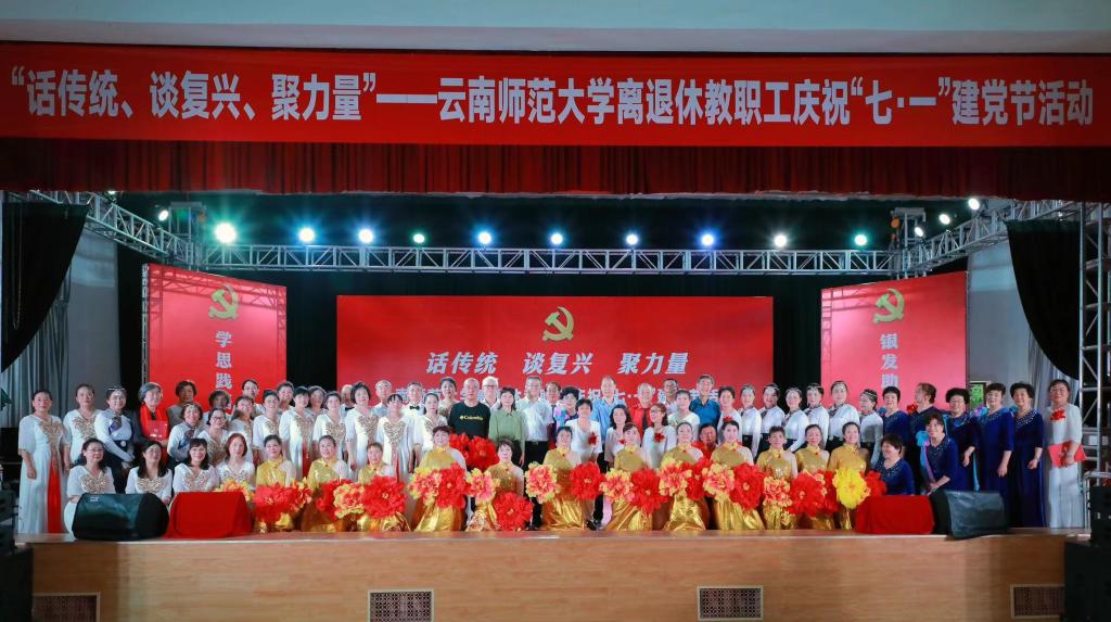 6月29日下午,离退休教职工党委、离退休工作处在一二一西南联大校区离退休教职工西院活动中心举行离退休教职工“话传统 谈复兴 聚力量”庆祝“七·一”建党节活动。校党委书记张祖武,学校离退休老领导,离退休工作领导小组成员单位及西南联大校区相关单位负责人,获得中共中央“光荣在党50年”纪念章的老党员,各党总支、党支部支委、各团体协会负责人、文学艺术作品获奖者等参加了活动。