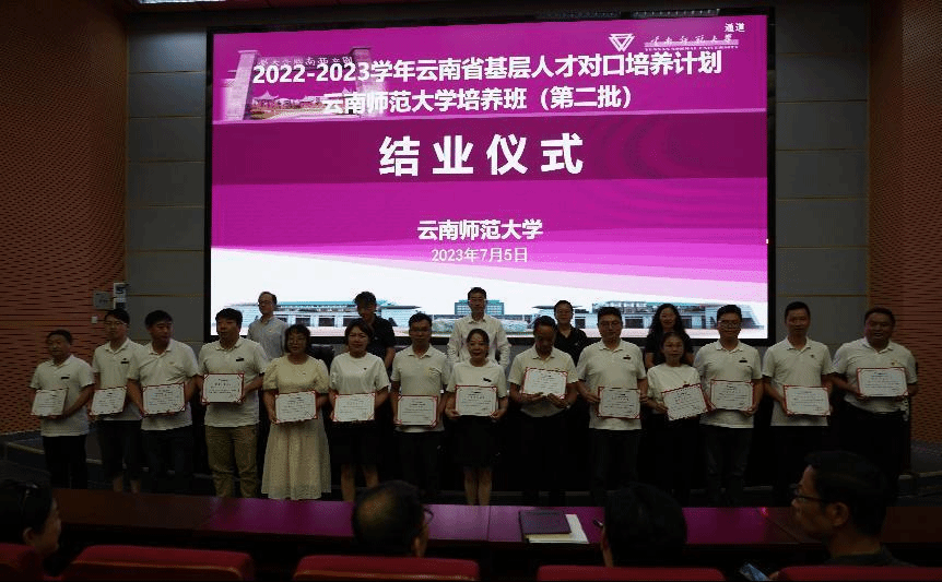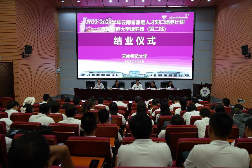 7月5日,2022-2023学年云南省基层人才对口培养计划云南师范大学培养班(第二批)结业仪式在呈贡校区举行。校党委副书记张玮,副校长孟庆红,组织部、继续教育学院等15个单位部门负责人、导师及57名学员参加了结业仪式。仪式由孟庆红主持。