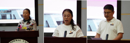物理与电子信息学院李红梅副教授作为导师代表发言,她从精准定位培养目标、三方互动融合课堂交流、跟岗研修以及返岗跟踪等四个方面做了交流分享。玉溪市峨山县双江第二小学的李敏、昆明市晋宁区教育科学研究与教师专业发展中心的刘云分别作为研修一年和半年的学员代表发言,表示返岗后一定将所学运用到教育教学实践中,做一个志存高远、静心教书、潜心育人、学校信赖、家长满意和学生喜爱的好老师。