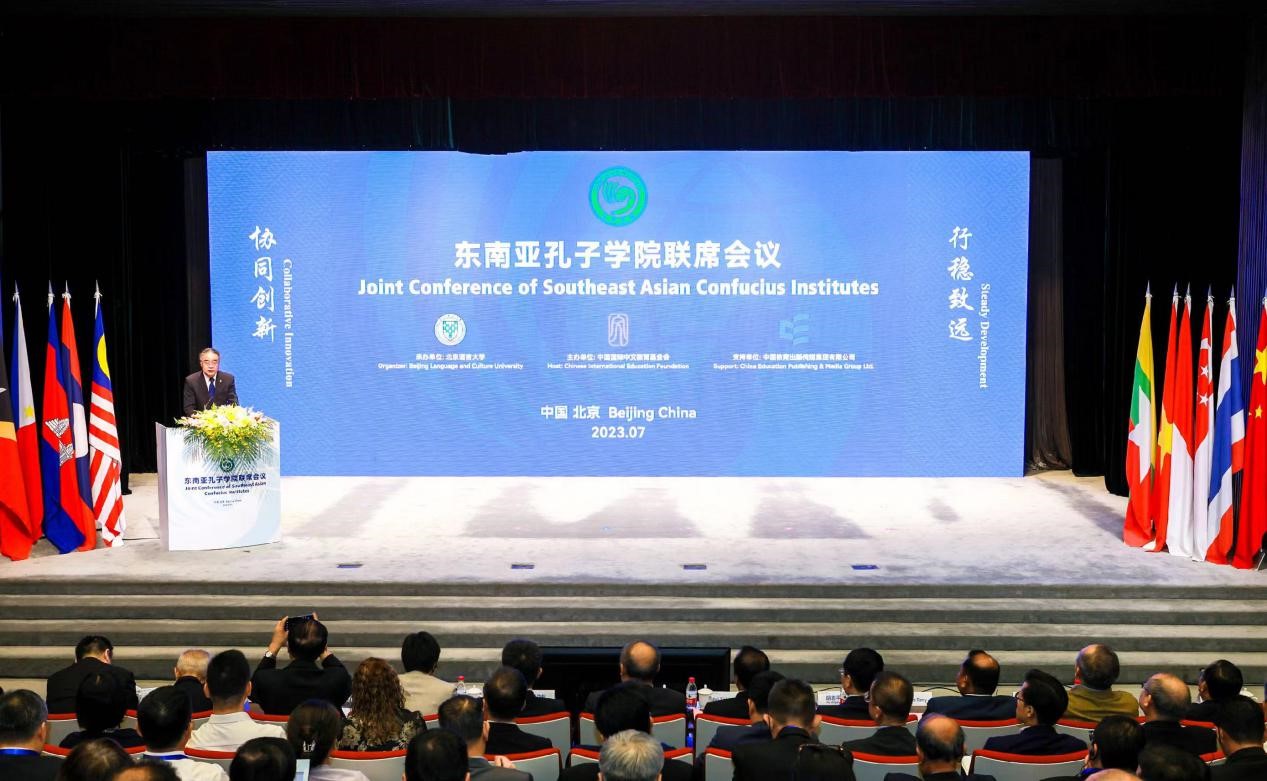 7月20日至21日,由孔子学院品牌运营机构——中国国际中文教育基金会主办的2023东南亚孔子学院联席会议在北京国际会议中心举行。东南亚10国62所孔子学院/课堂参会。副校长郝淑美作为中方合作院校领导参加联席会议。参加会议的还有泰国清迈大学副校长比迪蓬、缅甸仰光东方语言与商业中心学校校长王崇喜,以及我校对外合作交流处负责人、清迈大学孔子学院中外方院长、东方语言与商业中心孔子课堂中外方负责人。
