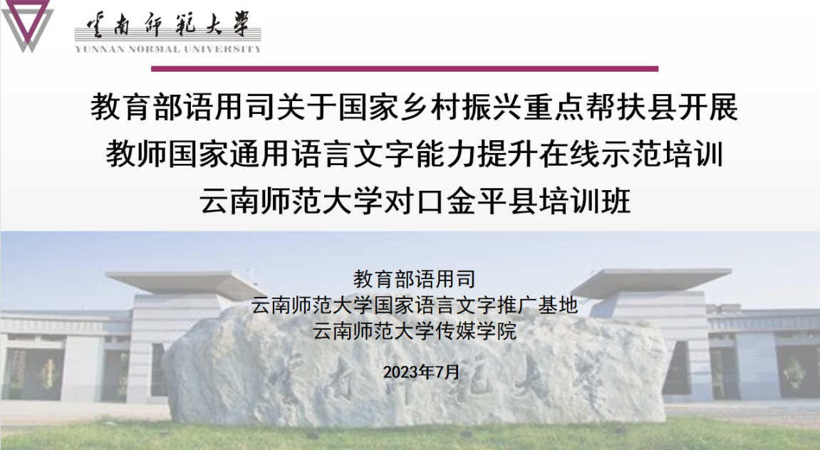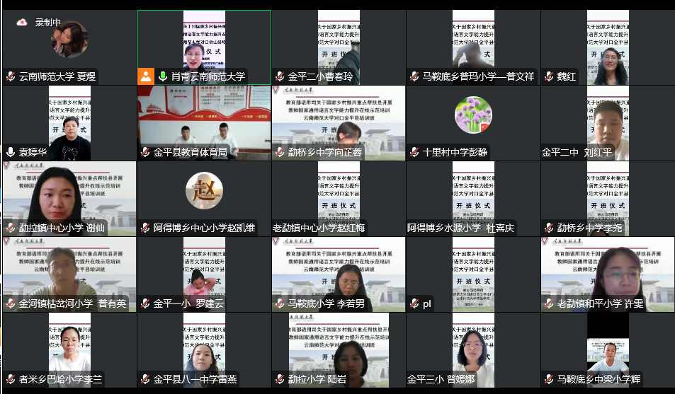 7月15日至29日,由教育部语用司主办,云南师范大学国家语言文字推广基地和传媒学院共同承办的对口国家乡村振兴重点帮扶县金平县教师国家通用语言文字能力提升培训在线上举行。金平县100名中小学教师参加了此次培训。