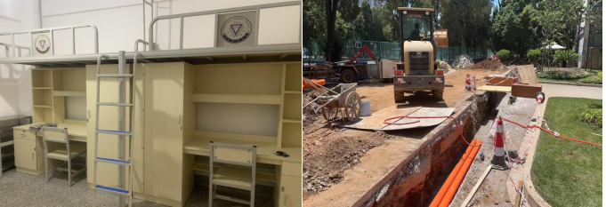 后勤保障服务中心积极推进学生食堂天燃气报警系统改造,提高食堂用气安全。积极推进和园新食堂智慧化学生餐厅建设,厨房设备、智慧化售餐系统、餐桌椅等设施设备正按计划安装中。为解决食堂员工上班早、校内没有住宿条件的问题,协同基建部门对呈贡校区8#学苑公寓架空层进行改造。