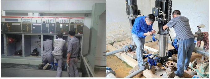 膳食科对食堂米饭生产线、油烟抽排系统、食品机械、冷库等保鲜设备和监控系统进行了维护保养。学生公寓管理科有序完成公寓保洁外包服务对接,对公寓沐浴热水系统、监控系统进行维修和系统优化。水电管理科和联大校区与家属区物业管理科对全校配电室、环网柜、开关站等高压配电系统进行预防性检测试验,对供用电线路进行检查,对二次供水设备进行保养维修,对二次供水水池进行清洗。