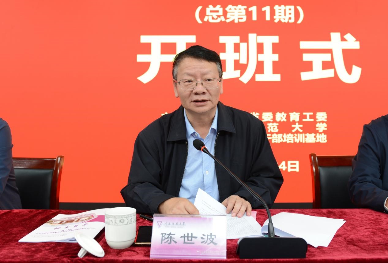 陈世波在动员讲话中向参训学员表示欢迎,他指出举办思政课新任教师培训班是深入学习贯彻习近平新时代中国特色社会主义思想主题教育的重要内容,是深入学习贯彻党中央关于教育工作的重大决策部署,持续推动凝心铸魂的政治任务。他强调,办好思政课关键在教师,关键在发挥教师的积极性、主动性、创造性。要深入思考如何拓宽视野格局、如何提高自身素养,把学习成果转化为真抓实干的具体行动和强大动力,转化为上好思政课的生动实践。最后,陈世波提出三点要求:一是提高政治站位,充分认识举办培训班的重要意义;二是强化政治担当,切实提升推动思政课队伍建设的能力水平;三是严守政治纪律,从严从实管理增强培训实效。