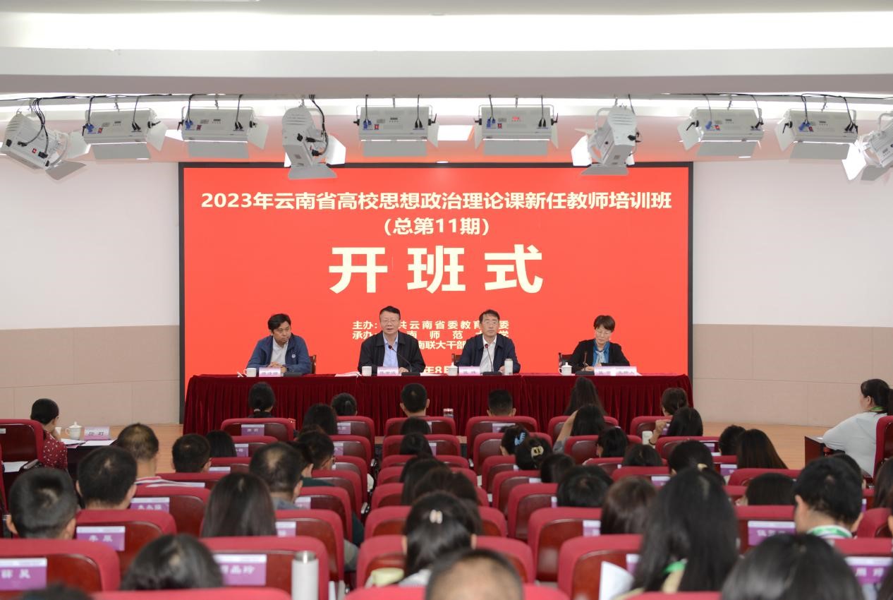 8月24日上午,由省委教育工委主办,云南师范大学承办的“2023年云南省高校思想政治理论课新任教师培训班(总第11期)”,在一二·一西南联大校区举行开班仪式。省委教育工委副书记、省教育厅党组成员陈世波作动员讲话,我校党委副书记张玮致辞。省委教育工委宣传部部长赫诗锦、副部长厉莉以及全省81所高校选派的174名学员参加了开班仪式。仪式由云南西南联大干部培训基地执行主任匡锦主持。