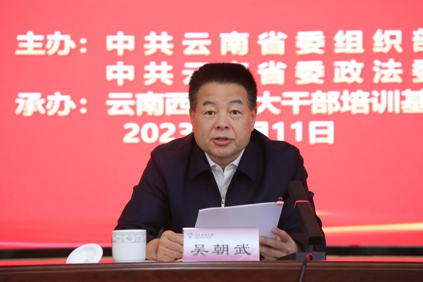 吴朝武强调,本次培训是深入学习贯彻习近平总书记关于社会治理和平安中国建设重要论述和重要指示批示精神的具体举措;是深入贯彻习近平法治思想,加快推进全省政法工作现代化的现实要求;是提升政法干部能力素质,加强队伍建设的迫切需要。全体学员要端正学习态度,确保真学、学懂;要严守培训纪律,确保取得实效;要认真总结实践,确保学以致用。吴朝武还对当前全省政法系统的有关重点工作作出了部署和要求。