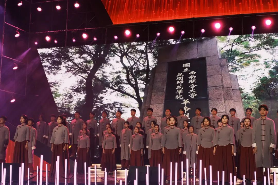 “中兴业,须人杰”,现场师生齐唱《云南师范大学校歌》。悲壮激昂的歌声勉励着云师学子传承西南联大精神,争做时代先锋。