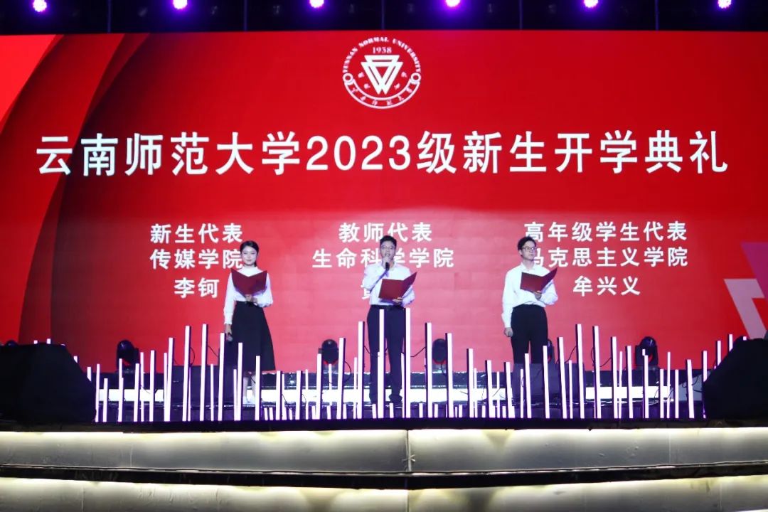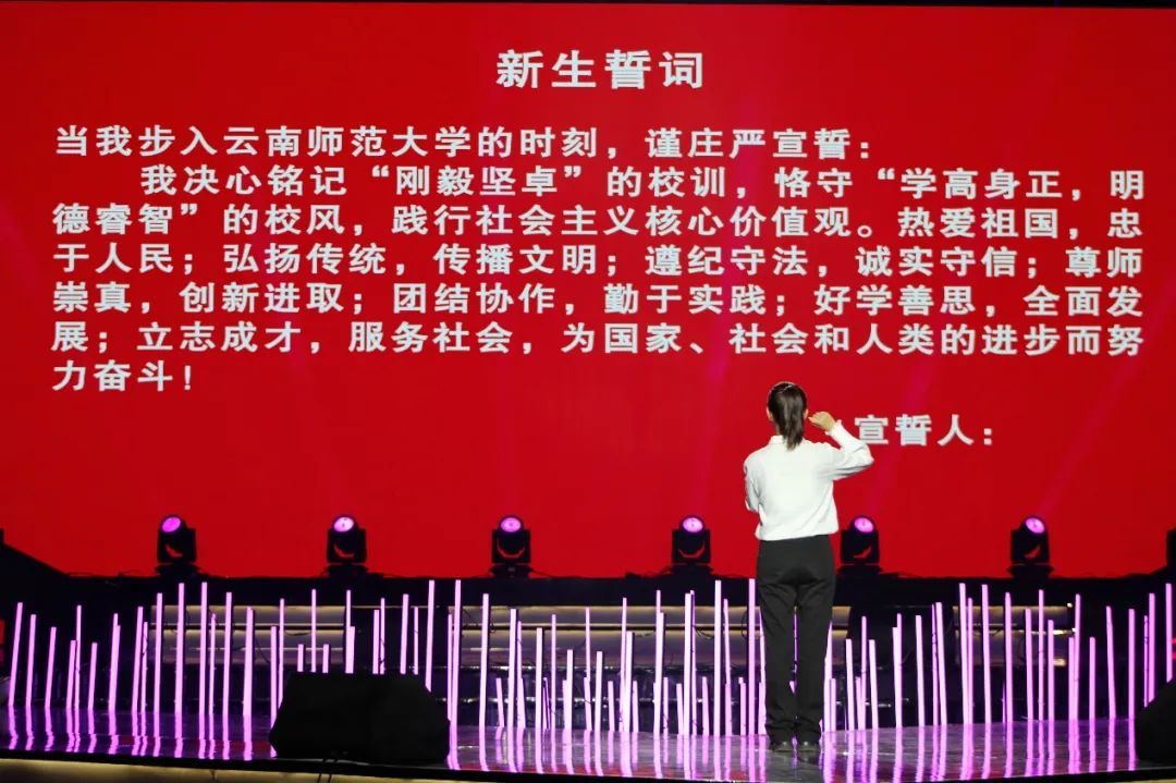 “当我步入云南师范大学的时刻,谨庄严宣誓:我决心铭记‘刚毅坚卓’的校训,恪守‘学高身正,明德睿智’的校风……”全体新生的誓词,汇成青春无悔的誓言。