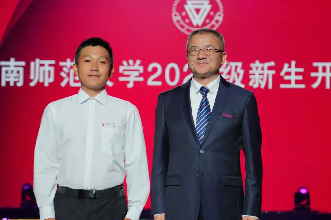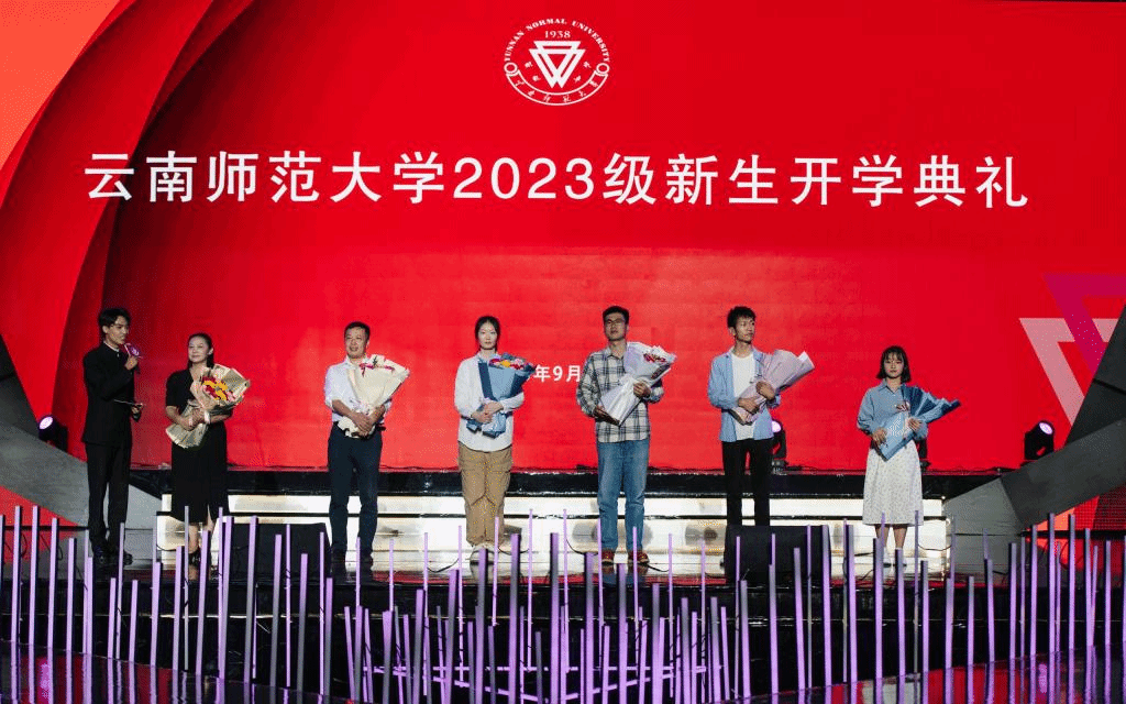 通过生动的视频及现场采访,新生们分享了云南师大“为了国家粮食安全,为了让老百姓过上好日子,把论文写在祖国的大地上”的马铃薯研究院尚轶教授学科团队,“仰望星空,脚踏实地、潜心科研、坚守助力伟大祖国繁荣昌盛”的能源与环境科学学院涂洁磊教授科技创新团队,“用一年的时间做一件终生难忘事情”的研究生支教团队,以及在东京奥运会、残奥会和全运会上获得佳绩的刘浩、王家超、山俊、江南、张敏娟等我校运动健儿们的精彩故事。在典礼现场,团队代表走上舞台,他们将云师人刚毅坚卓、不断进取的精神面貌烙印在每一个人心中。