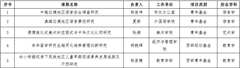 根据教育部社科司近日公示的2023年度教育部人文社会科学研究一般项目评审结果,我校共有5个项目进入公示名单。其中,青年基金项目3项,西部规划项目1项,西部青年项目1项。