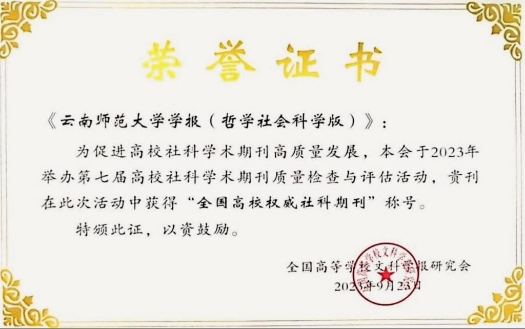 在全国高等学校文科学报研究会举办的第七届高校社科学术期刊质量检查与评估活动中,《云南师范大学学报》(哲学社会科学版)被评为“全国高校权威社科期刊”。