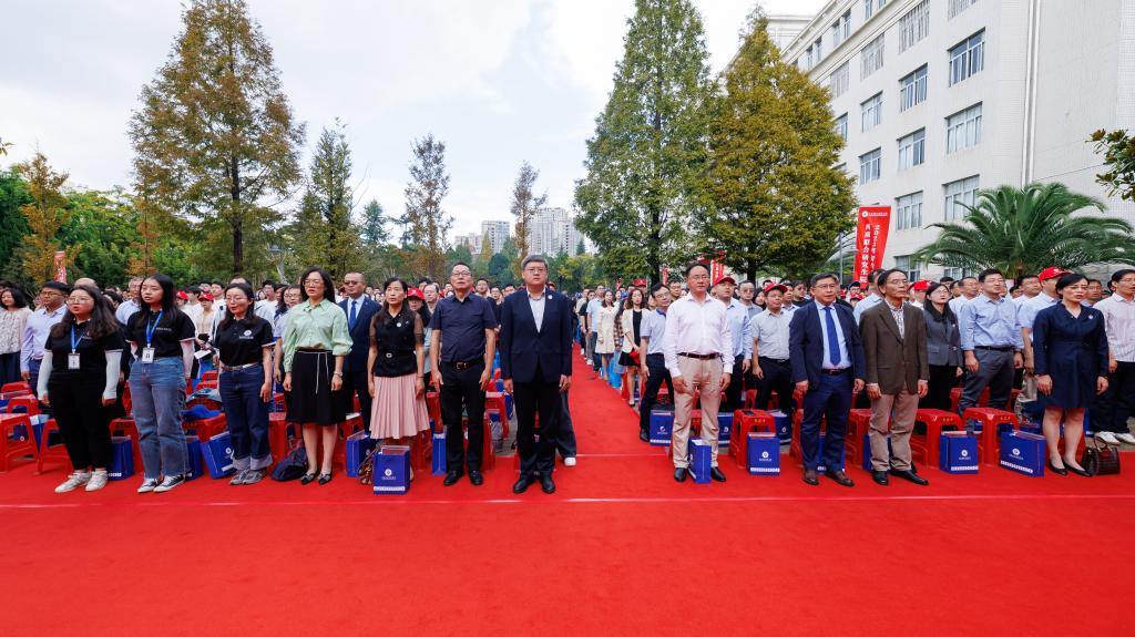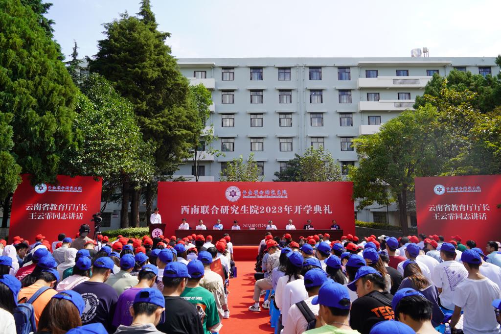 云南省教育厅厅长王云霏、副厅长王永全,云南大学党委书记周学斌,云南大学校长、西南联合研究生院院长方精云,云南大学副校长、西南联合研究生院常务副院长胡金明,昆明理工大学校长王华、副校长易健宏,云南师范大学校长王德强、副校长安学斌,北京大学、清华大学、南开大学研究生院负责人,省教育厅及云南三校有关部门负责人、导师代表、授课教师代表以及2023级全体新生参加开学典礼。胡金明主持开学典礼。
