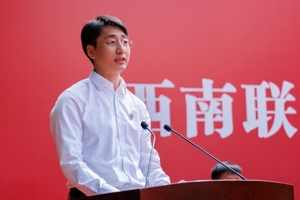 北京大学研究生院副院长肖云峰,清华大学研究生院副院长董渊,南开大学研究生院培养办公室主任李中,导师代表、云南师范大学“长江学者”特聘教授杨昆,以及学生代表张曦予、程一凡分别作了发言。我校杨昆教授在发言中表示,作为西南联合研究生院的导师,将进一步聚焦国家战略需求和国际科学前沿,结合六校学科交汇优势,强化基础研究和引领性创新,帮助研究生架构自由探索与目标导向相结合的学术发展之路,培育形成更多标志性成果,成为未来服务国家重大战略和驱动社会进步的创新力量。