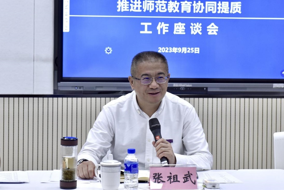 在昭通学院,调研组与昭通学院领导班子及相关部门、院系负责人就教育部师范教育协同提质计划工作推进情况进行了深入交流。张祖武对昭通学院近年来取得的成绩,特别是师范教育协同提质计划开展以来的发展情况给予充分肯定,并表示,我校与昭通学院有着共同的责任和使命,通过协同提质计划,将进一步加深两校的情谊,拓宽合作的领域。期待两校在未来合作中,不断总结经验,在学科专业建设、科研平台建设、科研团队建设、人才培养、教师学历提升及访学进修、教师互聘和学生交换培养等方面推进落实合作项目,以“昭通学院所需,云南师大所能”,全面支持昭通学院高质量发展。昭通学院党委书记陈红,党委副书记、校长李若青,副校长卢巧,党委委员、副校长饶勋剑参加了座谈。