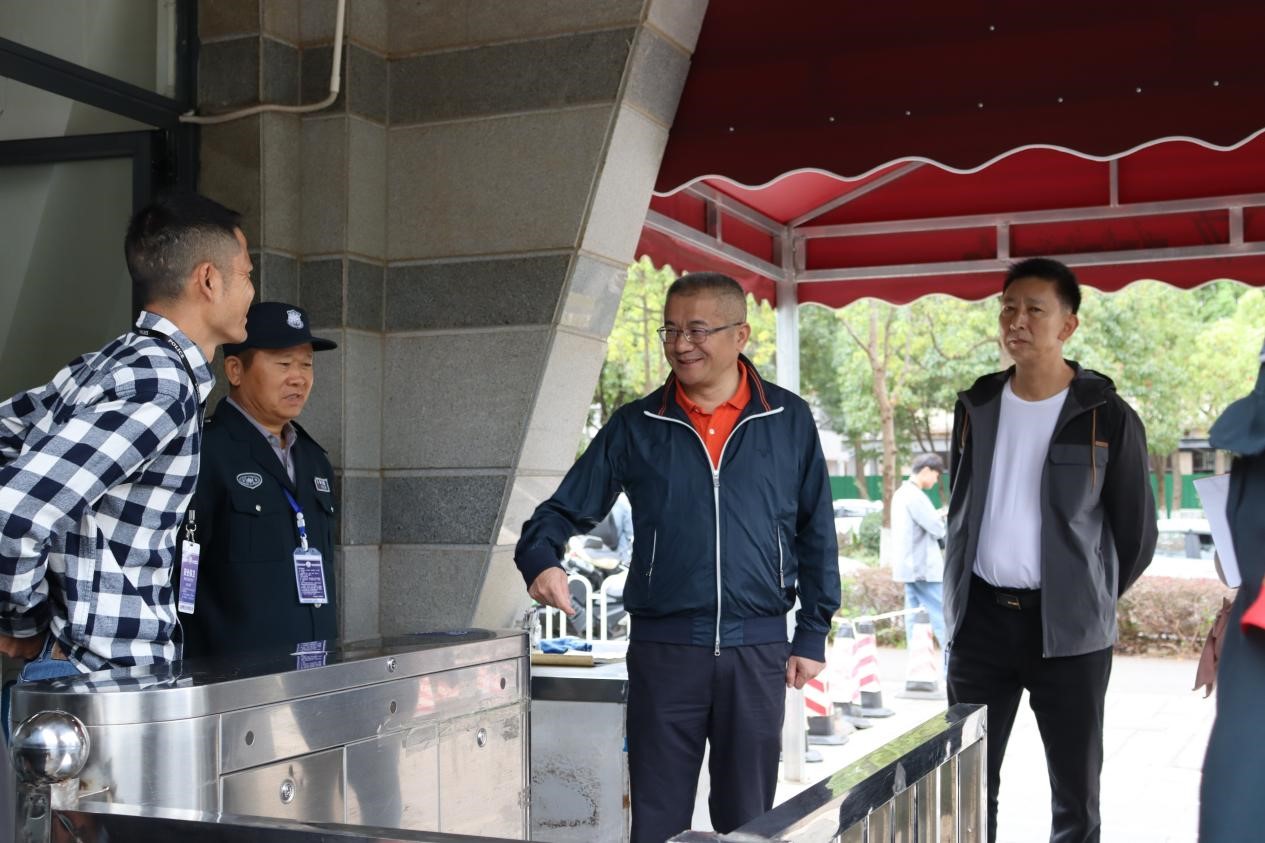 在七号门,张祖武向值班人员表达节日祝福,对他们坚守岗位表达感谢。在了解学生流动情况后,他嘱咐大家切实提高安全意识,做好校园门卫值守工作,加强校内外人员出入校园管理。当看到校门口等车的同学时,张祖武上前亲切问候,了解他们假期的外出安排,叮嘱他们提高安全意识和防范能力,并祝他们中秋、国庆快乐。
