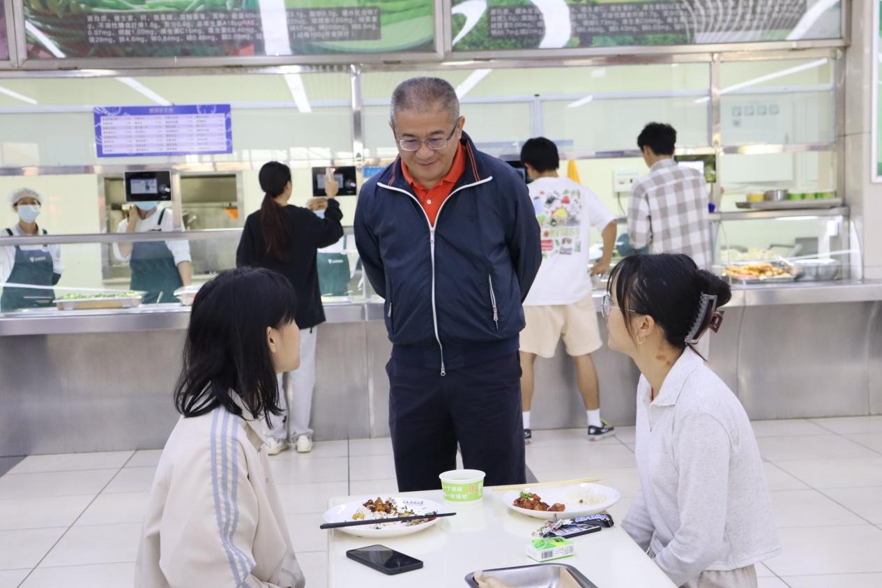 在食堂,张祖武详细了解节日期间学生食堂饭菜品种、质量以及餐饮供应储备等情况,并向坚守在工作岗位的一线工作人员表示感谢。他强调,节日期间食堂既要做好充足的物资保障供应,又要加强食品卫生安全监控管理,确保留校学生度过一个健康祥和的假期。张祖武与用餐学生亲切交谈,向他们及其家人致以节日祝福,详细了解同学们在小长假期间的生活和学习安排,勉励同学们利用好假期时间努力学习,锻炼身体,不断充实自己,不负青春,不负韶华。