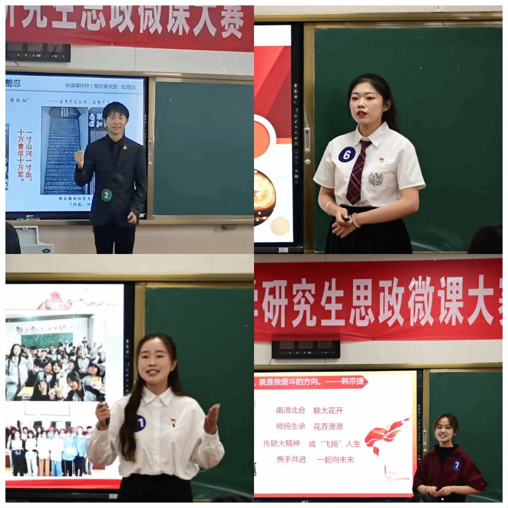 思政微课大赛得到了学校各研究生培养单位的重视和支持,经过初赛推荐,共有39支队伍脱颖而出进入校级决赛。决赛中,选手们结合自己的专业知识、实践经历,或讲述党的光辉历程,追忆英雄人物,重温英雄事迹;或讲述西南联大教育救国的故事,传承联大精神;或讲述扎根基层、投身志愿服务的动人故事和典型事迹,用“小切口”反映“大主题”,用“小故事”讲好“大道理”,用“小课堂”上好“大思政”。