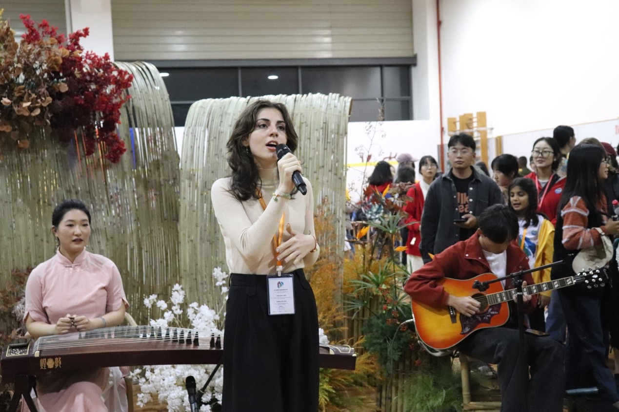 古筝、二胡、笛子、葫芦丝等精美的乐器吸引着外国小选手不断地上台一展歌喉,“我寻寻觅觅寻寻觅觅,一个温暖的怀抱,这样的要求算不算太高······”来自马来西亚的谢文龙一首《我是一只小小鸟》更是令现场的气氛燃起来,他的歌声和中文功底吸引了在场每一个观众,观看的人都禁不住为他竖起大拇指。“我来到场馆后迫不及待的奔向汉服区试穿汉服,然后就想跟大家分享一首我最喜欢的中文歌曲《中国话》,我最喜欢的是歌曲里面说唱那段。”来自哥斯达黎加的何诗怡说道。