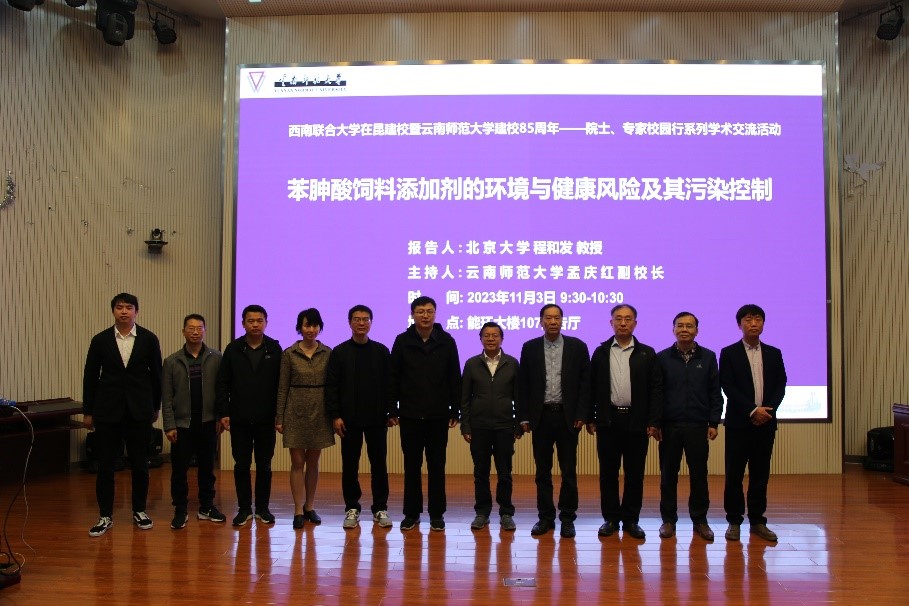 11月3日上午,北京大学程和发教授应我校邀请做客西南联大高端学术论坛,为100余名师生作题为《苯胂酸饲料添加剂的环境与健康风险及其污染控制》的学术报告。论坛由副校长孟庆红教授主持。