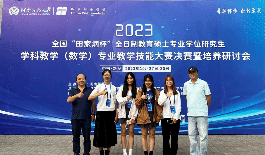 10月27日至30日,2023年全国“田家炳杯”全日制教育硕士专业学位研究生学科教学(数学)专业教学技能大赛决赛暨培养研讨会在河南师范大学举办。我校数学学院4名选手入围决赛,决赛中,4位选手取得了优异成绩。其中,2022级张迎荣获一等奖(导师马绍文),2021级姜梦洁荣获二等奖(导师刘冰楠),2022级李罗荣获三等奖(导师孔德宏),2021级刘双宇荣获优秀教学设计奖(导师杨亚平)。马绍文、孔德宏、刘冰楠、杨新鹏四位老师荣获优秀指导教师奖。