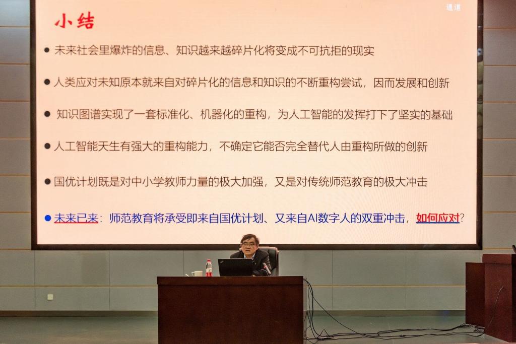 知识图谱下的碎片与重构以及碎片重构是人应对未知的基本能力。王青教授由资源库联想到未来教育难题,结合实际提出了对碎片与重构的看法。他认为,物理教育的核心目标是培养具有应对未知能力的人,其重要内容之一就是碎片重构的能力,即对未知及其内在的整体认知能力。我们在碎片重构的过程中,去粗取精、去伪存真、纵串横联,建立起了自己独立的世界观和看待问题的方式。他提出了“面对未来AI数字教师和国优计划对传统师范教育的冲击,我们应该如何应对?”的问题,启迪大家思考。