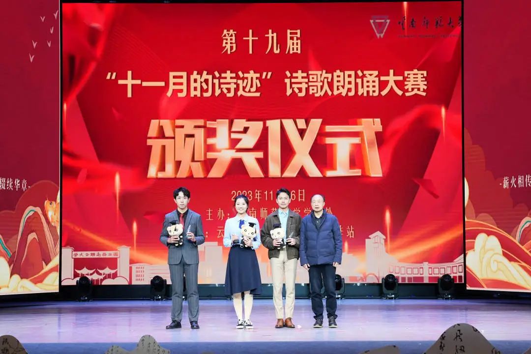 评委组组长、文学院教授骆锦芳对16组选手的朗诵作品进行了点评,他深有感触地说:“‘十一月的诗迹’诗歌朗诵大赛传递着云师学子的爱党爱国之声,表达着对西南联大精神的守望,对每一位云师人都有独特的意义。”
