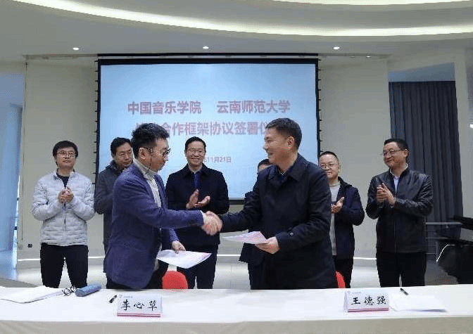 11月21日,我校与中国音乐学院战略合作框架协议签署仪式在音乐舞蹈学院举行。中国音乐学院院长李心草、副院长黄虎、中国音乐学院教师代表,我校校长王德强、副校长陈正权、学校相关部门负责人、音乐舞蹈学院领导班子成及师生代表参加签署仪式。