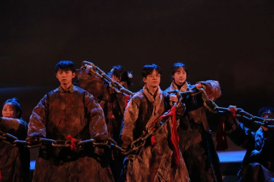 1937年,抗战全面爆发,平津沦陷。为保存中华民族文化教育命脉,北大、清华、南开三校被迫南下长沙。战火蔓延,南京沦陷,长沙岌岌可危。舞台上,灯光聚焦在一张斑驳的椅子上,四周是怀抱书本的学生们。彼时,诺大的华北已经安放不下一张平静的书桌。三校师生被迫再次迁移至昆明合组成立西南联合大学,其中湘黔滇旅行团的师生们徒步到昆,被称为“世界教育史上的一次长征”。