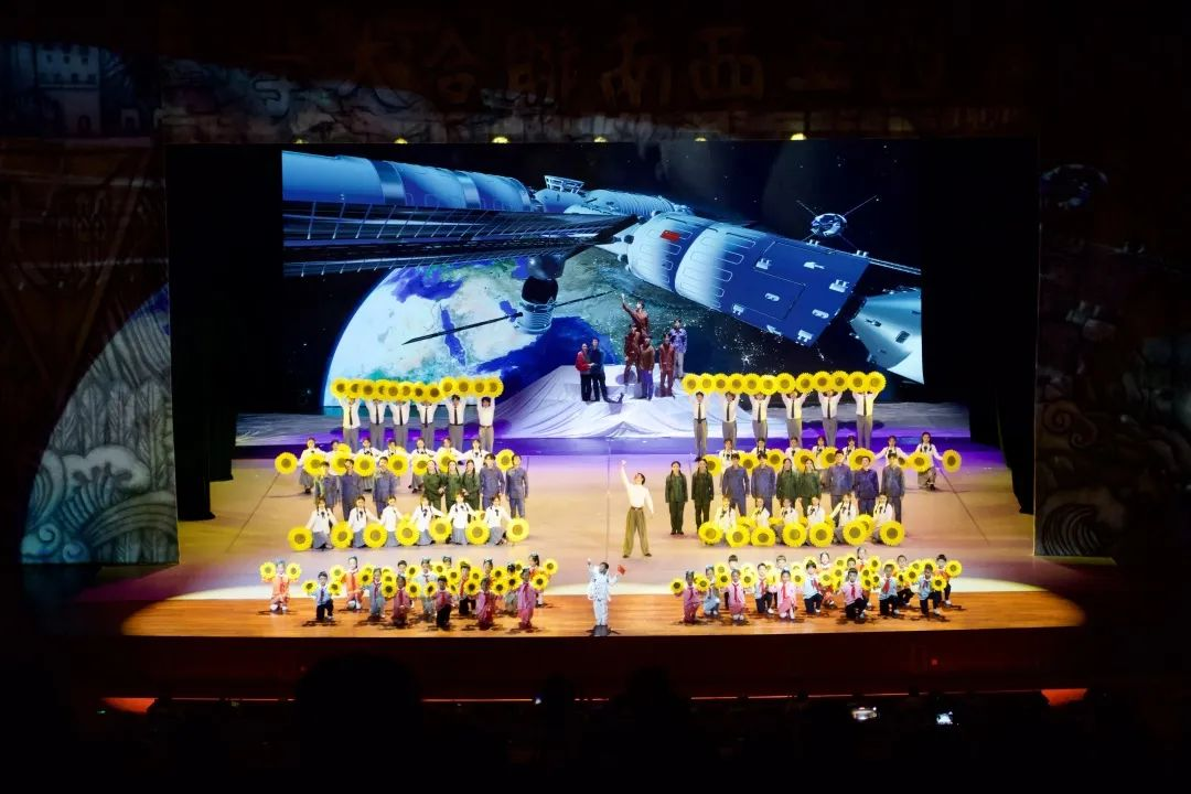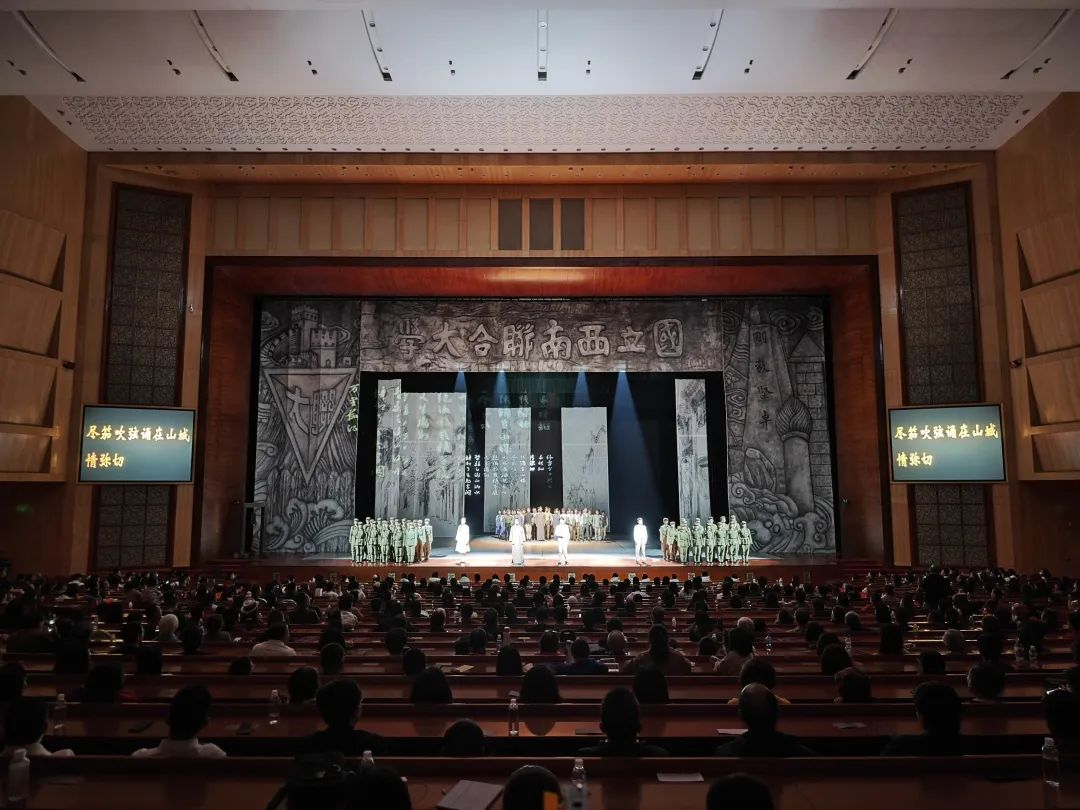 在西南联合大学在昆建校暨云南师范大学建校85周年之际,11月29日晚,我校倾情打造的大型音乐舞蹈史诗《西南联大》在海埂会堂首次公演。剧目以西南联大爱国主义精神为内核,跨界融合音乐、舞蹈、戏剧、曲艺、非遗传承技艺等多种艺术门类,以“华夏书声”“百年沧桑 薪火南迁”“峥嵘岁月 联大往事”“民主堡垒 南天火炬”“苍穹之光 血脉流芳”“师之大”6个篇章,综合展现西南联大教育救国光辉历史,以及西南联大师生遍布祖国各个领域发光发热的故事。整场演出气势恢宏,现场掌声不断。