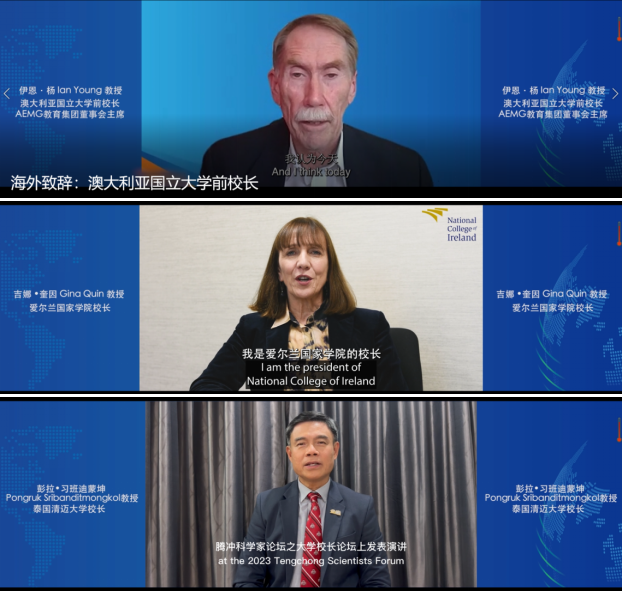 澳大利亚国立大学前校长伊恩·杨教授,爱尔兰国家学院吉纳·奎因教授,泰国清迈大学校长彭拉·习班迪蒙坤教授在线上进行了视频致辞。