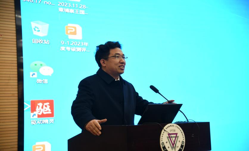 11月30日下午,由云南师范大学主办、云南华文学院承办的“联大高端学术论坛”在同析2栋报告厅举行。北京语言大学教授、博士生导师、国际中文教育研究院吴应辉院长为师生们作了题为《国际中文教育研究热点、前沿与趋势》的学术讲座。讲座由云南华文学院黄启庆副院长主持,来自在昆高校的200余位教师和学生参加了此次学术活动。