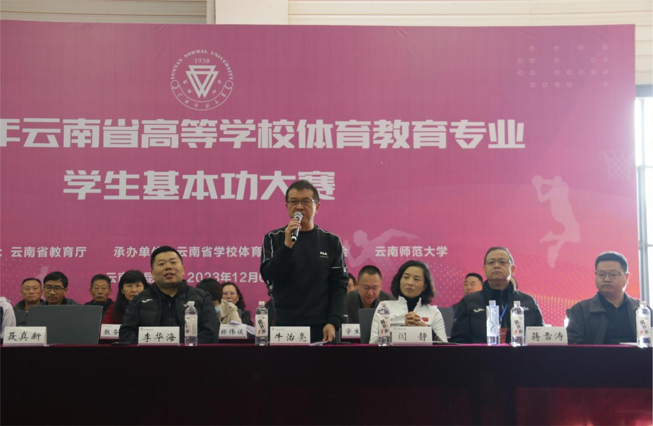 开幕式上,牛治亮对省教育厅和云南省学校体育教学指导委员会的信任和支持表示感谢,对各院校领导、全体教练员、运动员表示欢迎。他指出,体育教育是培养全面发展的人才的重要途径,是提高国民素质、促进社会和谐发展的基础工程。本次大赛,旨在全面展示云南省高校体育教育专业学生的风采,提高学生的综合素质,培养学生的团队精神和竞技能力,为云南省体育教育事业的发展储备优秀人才。牛治亮表示,云南师范大学将竭诚当好东道主,严格按照大赛组委会的各项要求,精心准备、悉心安排,细心工作贴心服务,全力以赴确保大赛取得成功。