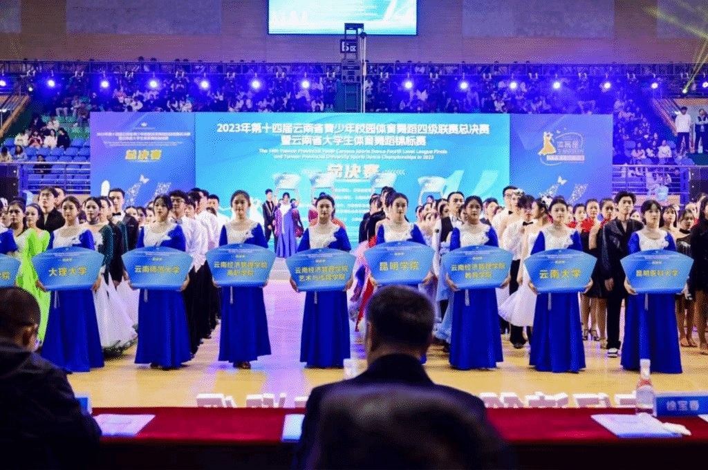 12月9日,云南省第十四届青少年校园体育舞蹈四级联赛总决赛暨云南省大学生体育舞蹈锦标赛在云南经济管理学院开幕。本次比赛共计102个参赛单位,1300多名参赛选手同台竞技。在比赛中,我校音乐舞蹈学院张楹、杨欣烨、王思卓、葛奕伶、马鸣璇、杨琪6名学生,凭借良好的心理素质和精湛的舞艺,获大学普通院校组6人三级冠军,6人校园恰恰恰亚军;2023级舞蹈学专业杨欣烨获大学普通院校单人三项冠军、单人伦巴冠军;2023级舞蹈学专业王思卓获大学普通院校单人恰恰冠军、单人华尔兹亚军;2023级舞蹈学专业葛奕伶获大学普通院校单人伦巴亚军,展示了我校学子的青春风貌。
