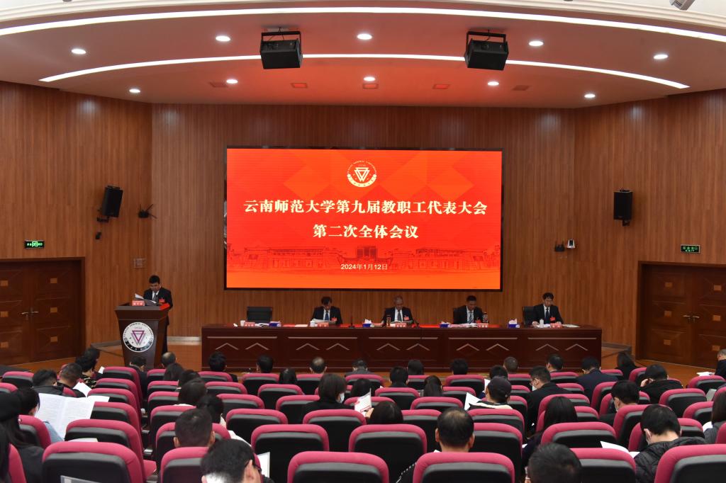 1月12日,云南师范大学第九届教职工代表大会暨工会第十六届会员代表大会第二次全体会议在呈贡校区汇学楼报告厅举行。会议听取了学校2023年度工作报告、财务工作报告;审议和批准了学校工会第十六届委员会工作报告、经费审查委员会工作报告。