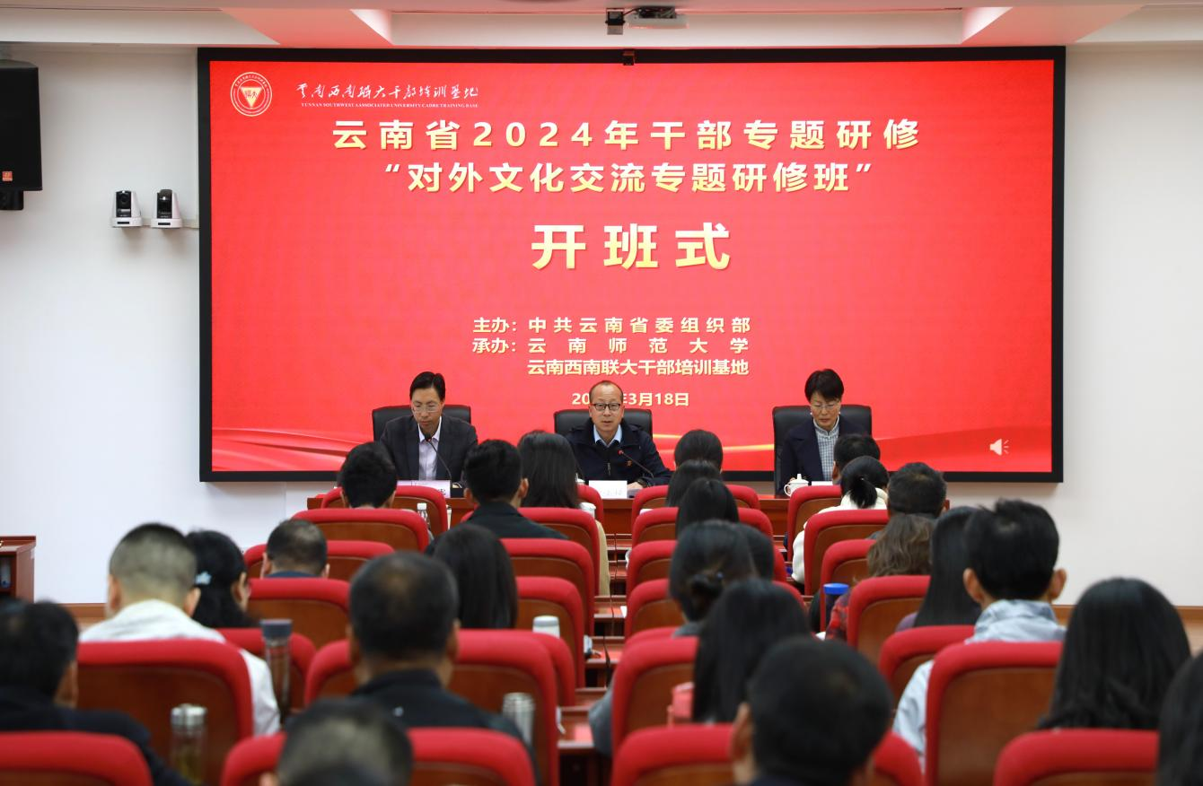 3月18日,由中共云南省委组织部主办,云南师范大学、云南西南联大干部培训基地承办的云南省2024年干部专题研修“对外文化交流专题研修班”在我校西南联大校区开班。来自省委和省级国家机关各部委办厅局、各人民团体、各在昆本科院校、各省属企业的96名在职干部参加培训。