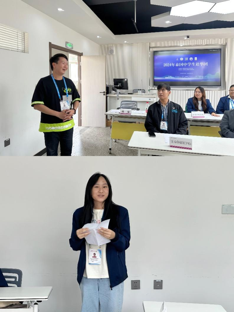 教师代表吕曌瑜认为中泰两国友好合作之路源远流长,尤其是近年来中泰两国政府与民间交流更加频繁密切,真正体现了中泰一家亲。吕曌表示,自己16年前曾在昆明留学,正因受到中国的培养,成为了一名中文老师,现在为泰国中学生教中文。他希望同学们借此机会努力学习,努力成为服务中泰友好交流的栋梁之才。